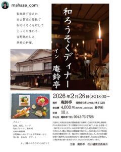 『2/26(木)和ろうそくディナー in 庵鈴亭』
